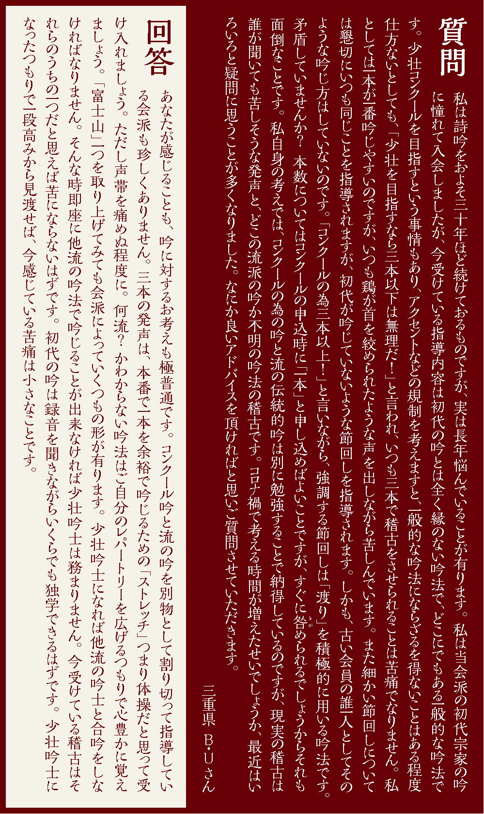 ※こちらの質問は『吟と舞』2021年9月号に寄せられたものです